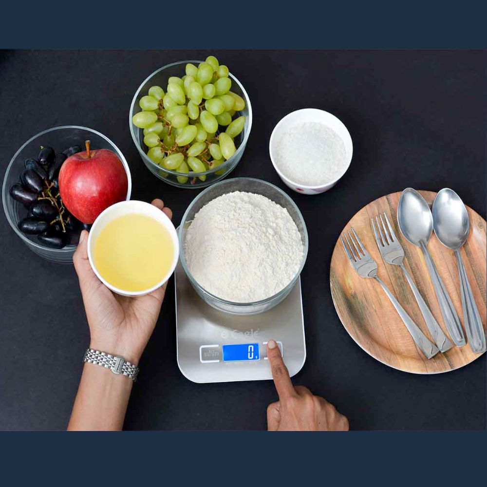 Its large weighing platform allows convenient placement of bigger containers, while the practical tare function enables multiple ingredients to be measured in the same bowl without resetting the scale. This makes it an ideal choice for cooking, baking, and meal preparation.